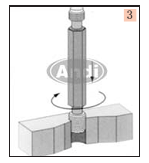 7、 取鋼絲螺套:在安裝過程中出現(xiàn)問題或者由于鋼絲螺套使用時(shí)間過久需要取出絲套,應(yīng)當(dāng)使用帶有刃的卸套工具對(duì)準(zhǔn)螺套端口,用榔頭猛打一下,用手加力按下手柄反螺紋旋轉(zhuǎn)即可退出鋼絲螺套。