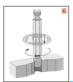 5、沖斷安裝柄 通孔時(shí),要將絲套安裝柄沖斷,一般用沖斷器對(duì)準(zhǔn)安裝柄,用200g左右的榔頭猛擊一下即可去除,對(duì)于18×2.5以上的粗牙絲套和14×1.25以上的細(xì)牙絲套,用尖嘴鉗上下彎曲安裝柄就可去除。